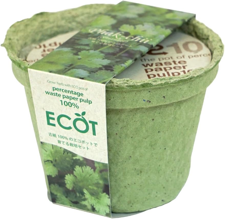 地球にやさしい国産エコポットでパクチー(コリアンダー)を育てよう!ポットは古紙100%の再生紙でできていて、ポットは使用後、そのまま土に埋めておくと、年月をかけて生分解し、土に戻ります。