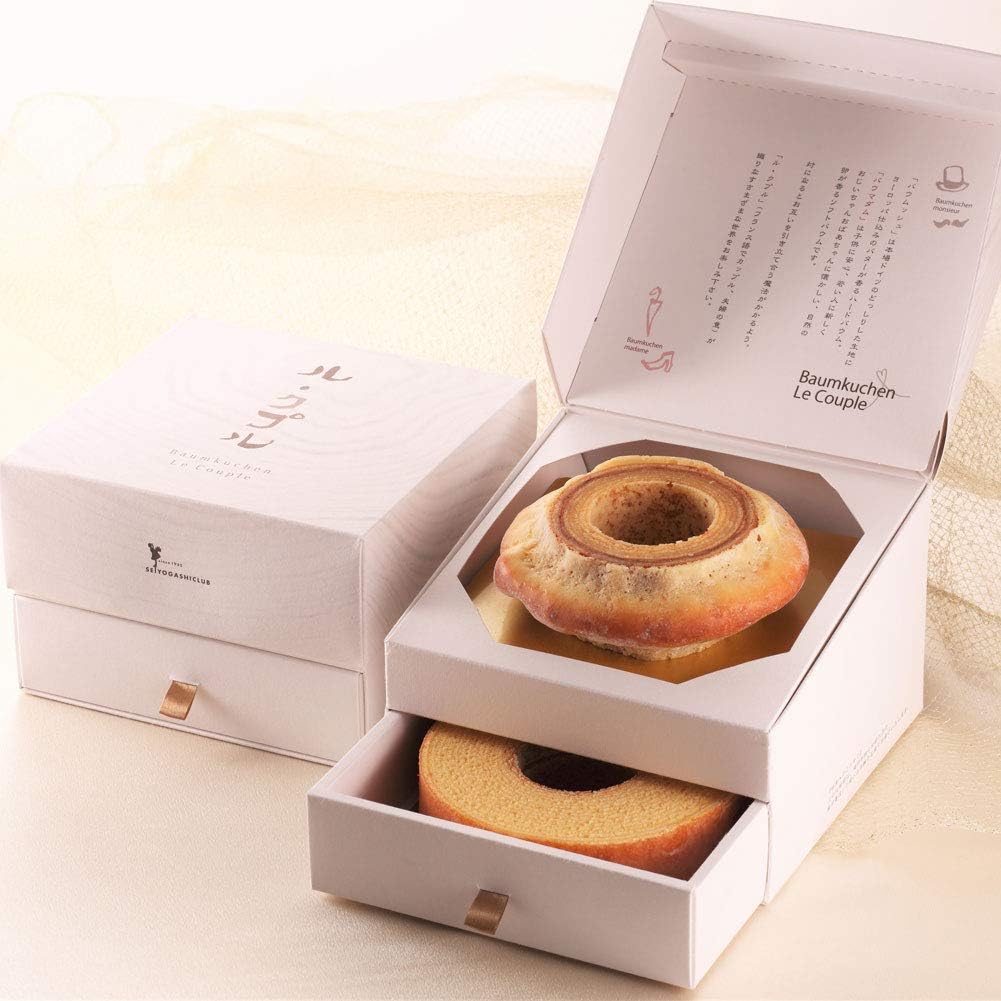 重厚さの中にやさしい食感と濃厚なバターの風味を追求した”バウムッシュ”と、やさしい食感としっとりとした風味を追求した”バウマダム”のアソート「西洋菓子倶楽部 / ル・クプル ¥3,132」。濃厚なバター風味が病みつきになる”バウムッシュ”と、絶妙なバランスで誰からも愛される優しい味わいの”バウマダム”を、ぜひ食べ比べてみて!