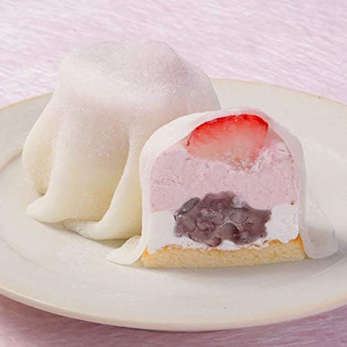 贅沢に6層になったムース大福「ふる川製菓 / 夢のムース大福 ¥3,780」。スポンジ生地の上に純生クリームと餡玉、フルーツムースを、モチモチの求肥で包まれた新感覚和菓子♡フワフワの食感をぜひ味わってみて!