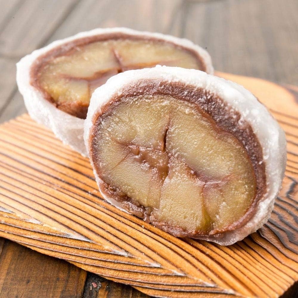 柔らかな羽二重餅に甘味の強い大粒の渋皮栗がまるごと入った「新杵堂 / まるごと渋皮栗大福 ¥3,796」。和菓子の三大素材が奏でるその味は、ひとつひとつ職人が丁寧に手作業で作り上げた自慢の逸品♡こし餡とやわらかなお餅との絶妙な組み合わせだけでなく、栗の甘みや風味を贅沢に味わうことができます♪
