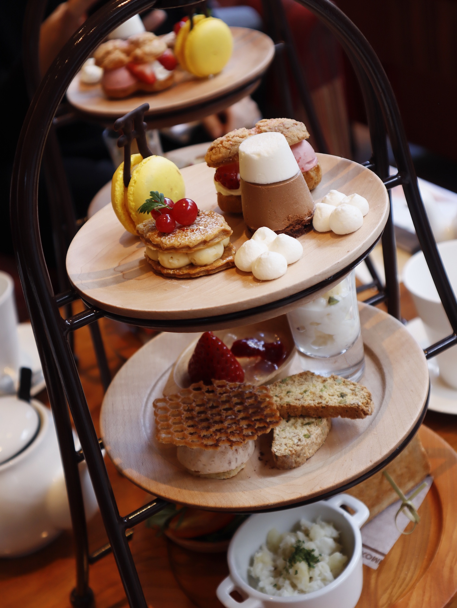 到着してまずいただいたのは「開運来福アフタヌーンティー(2026年2月28日まで)」目にも嬉しい⼝福なひととき。