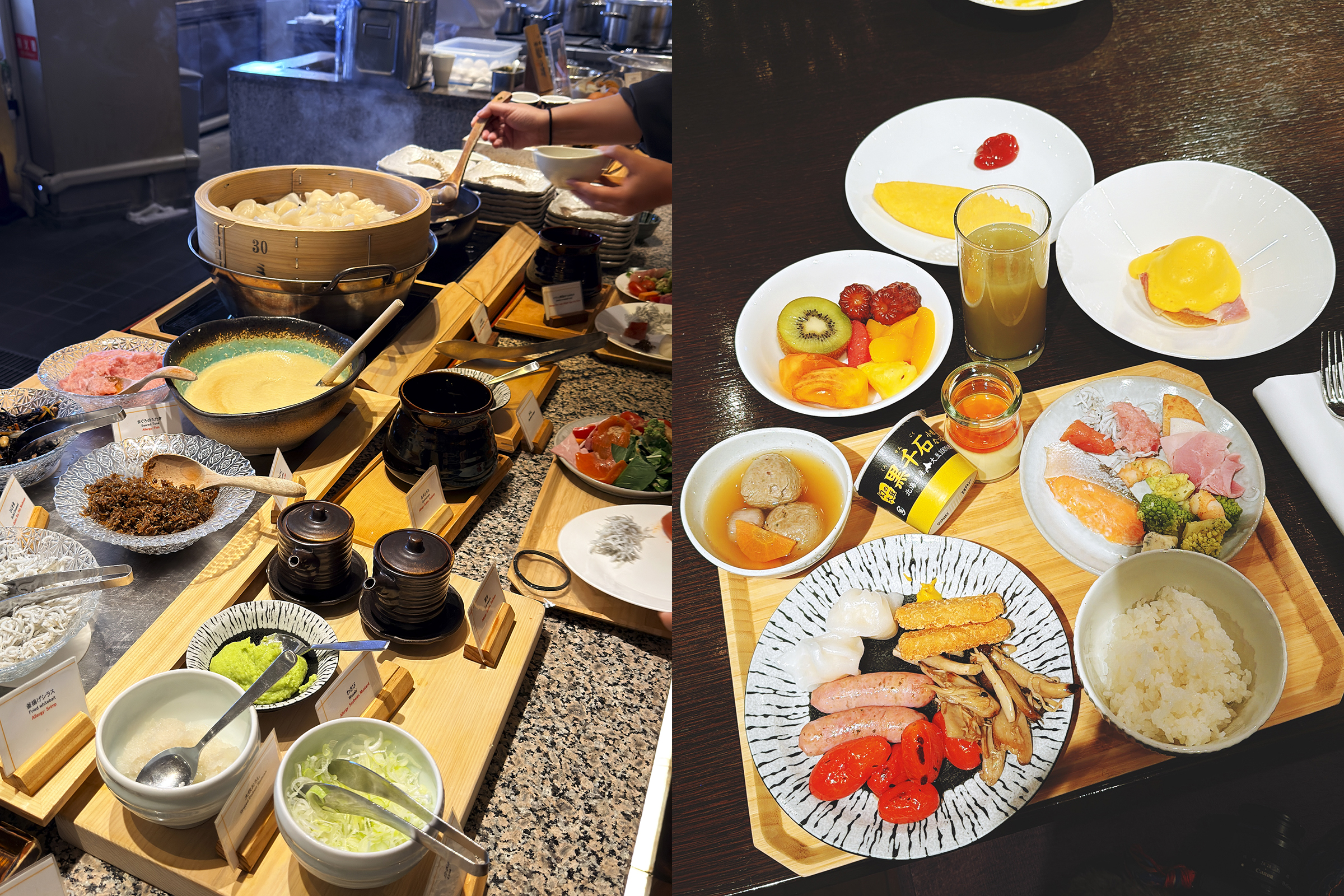 朝のリビングルームで箱根の空気を感じながら、お出かけ前に「ダイニングルーム ‒ フレンチ」のビュッフェでしっかりと朝ごはんを。