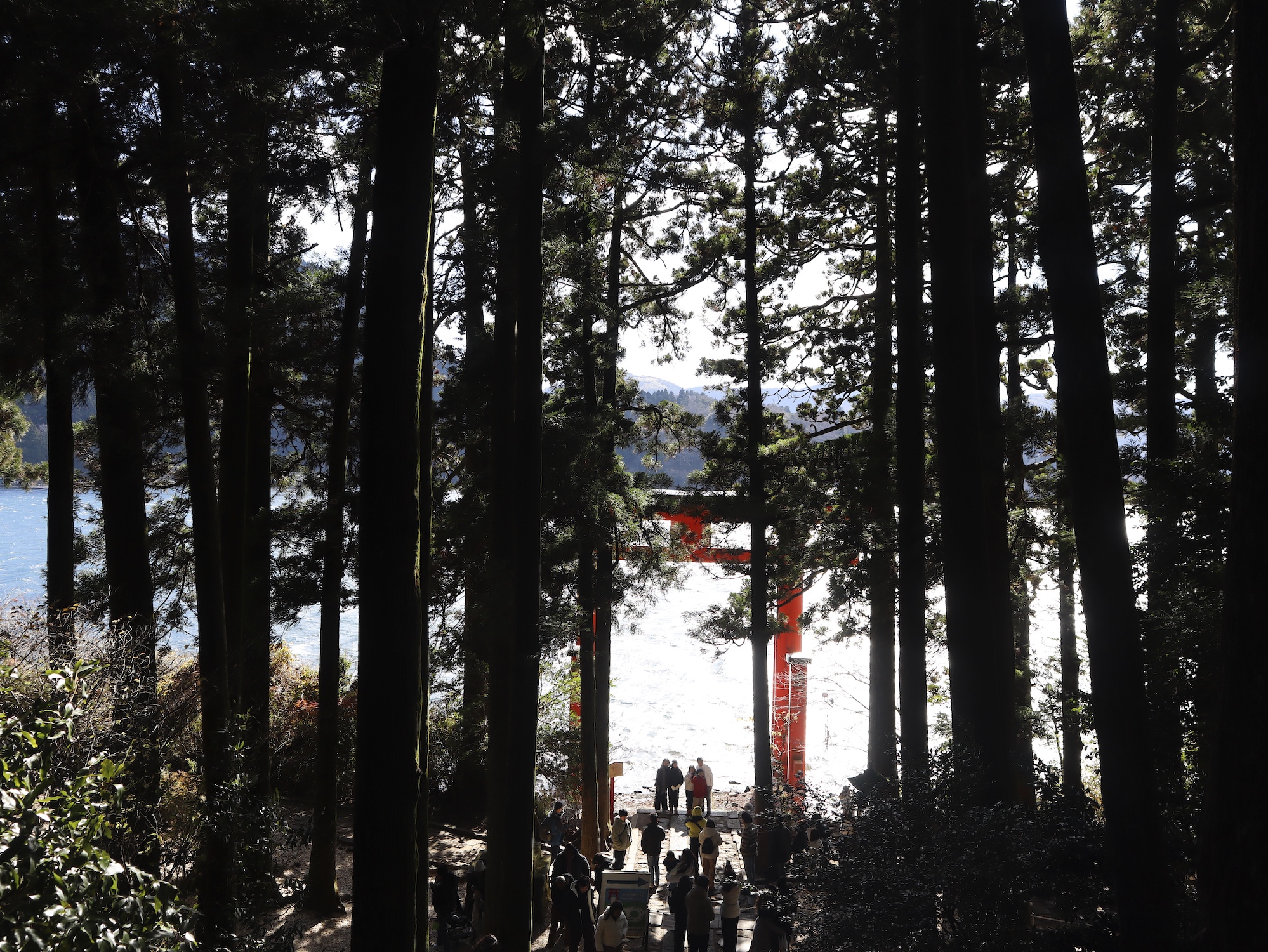 芦ノ湖の守護神・九頭龍大神(くずりゅうおおかみ)をお祀りする「九頭龍神社」。商売繁盛・金運守護・心願成就・良縁成就などのご利益があると言われていますが、最近では縁結びの御利益が人気なのだとか。この九頭龍から流れる水面が”♡”に見えたら素敵なことがあるかも?