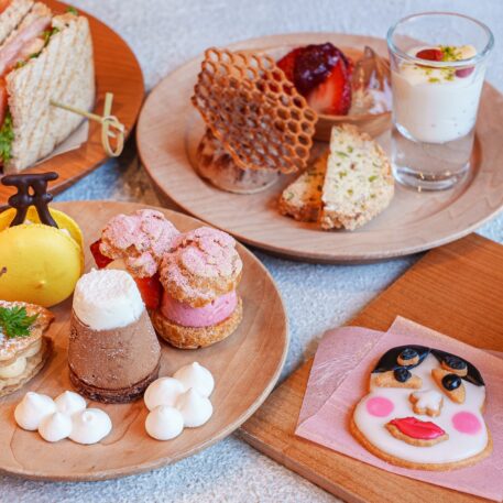 到着してまずいただいたのは「開運来福アフタヌーンティー(2026年2月28日まで)」目にも嬉しい⼝福なひととき。
