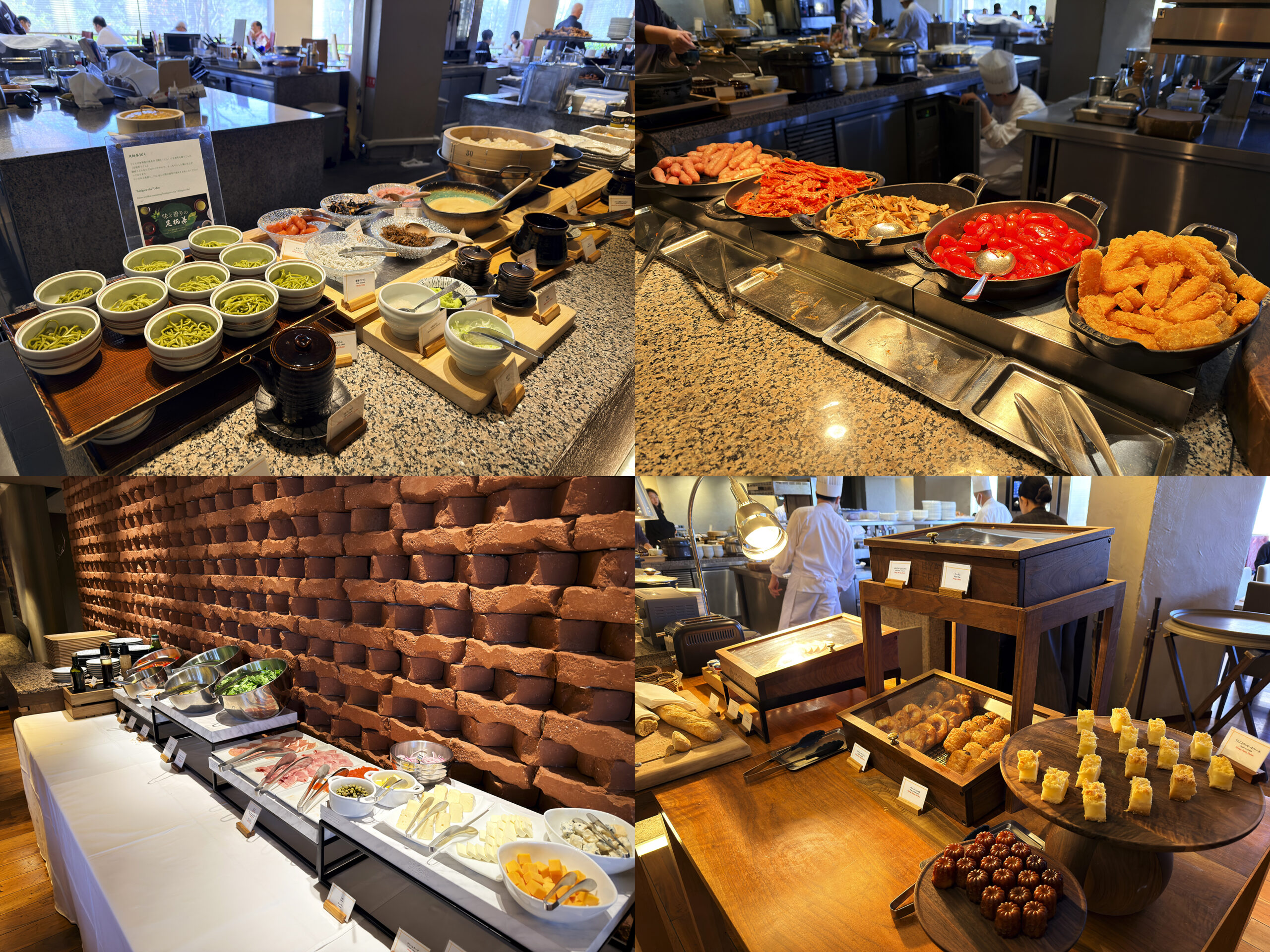 活気あふれるオープンキッチンから漂う⾳や⾹りが五感を刺激してくれます。新鮮な地元⾷材、丁寧に仕上げた箱根ならではのお料理の数々に、朝から嬉しい目移り。