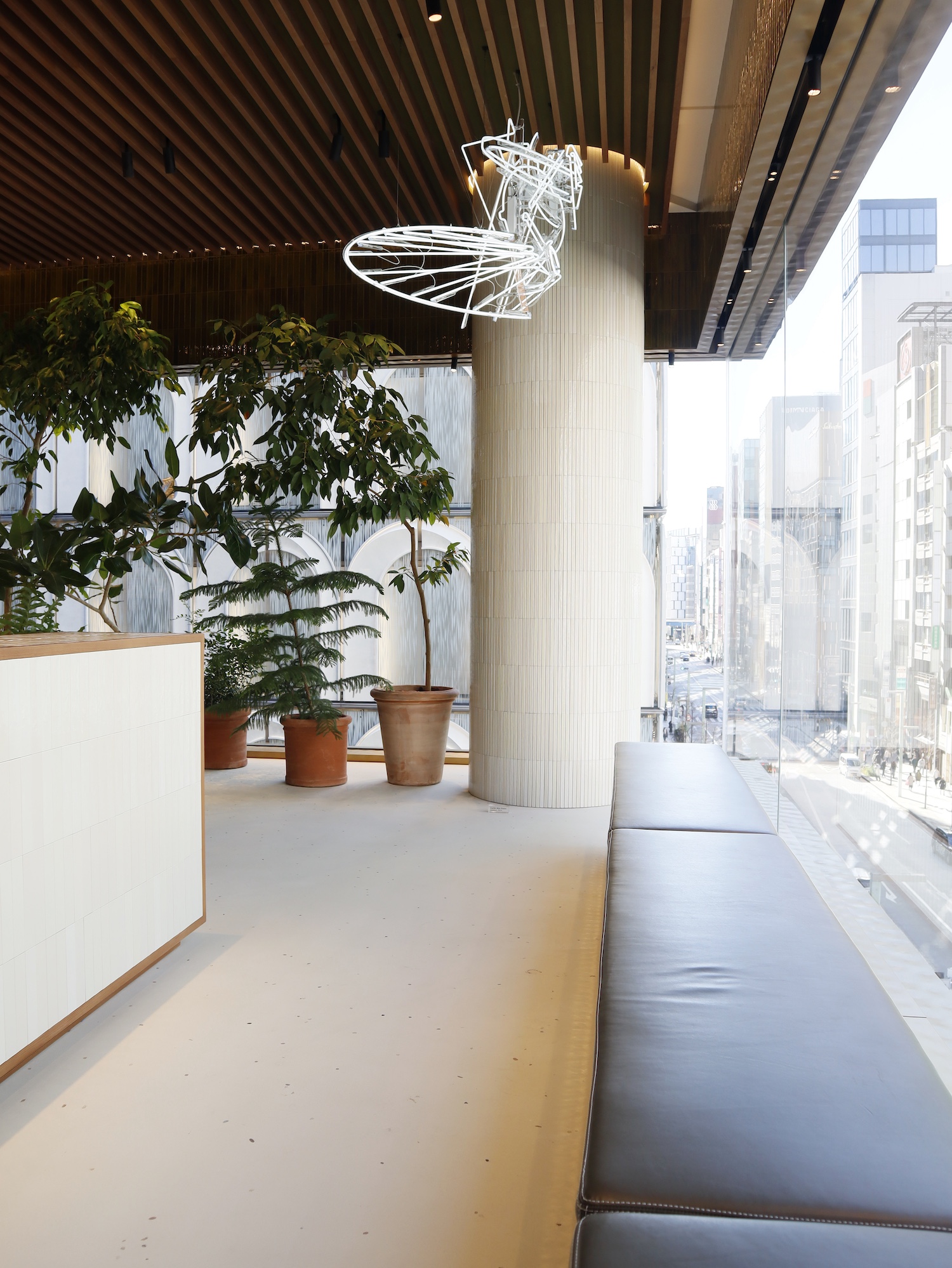 ギフトカウンター奥のベンチで、4階から銀座の街を眺めながらちょっとブレイク。個人的に居心地が良すぎて大好きな場所なんです♡(※ベンチでの飲食は出来ません)