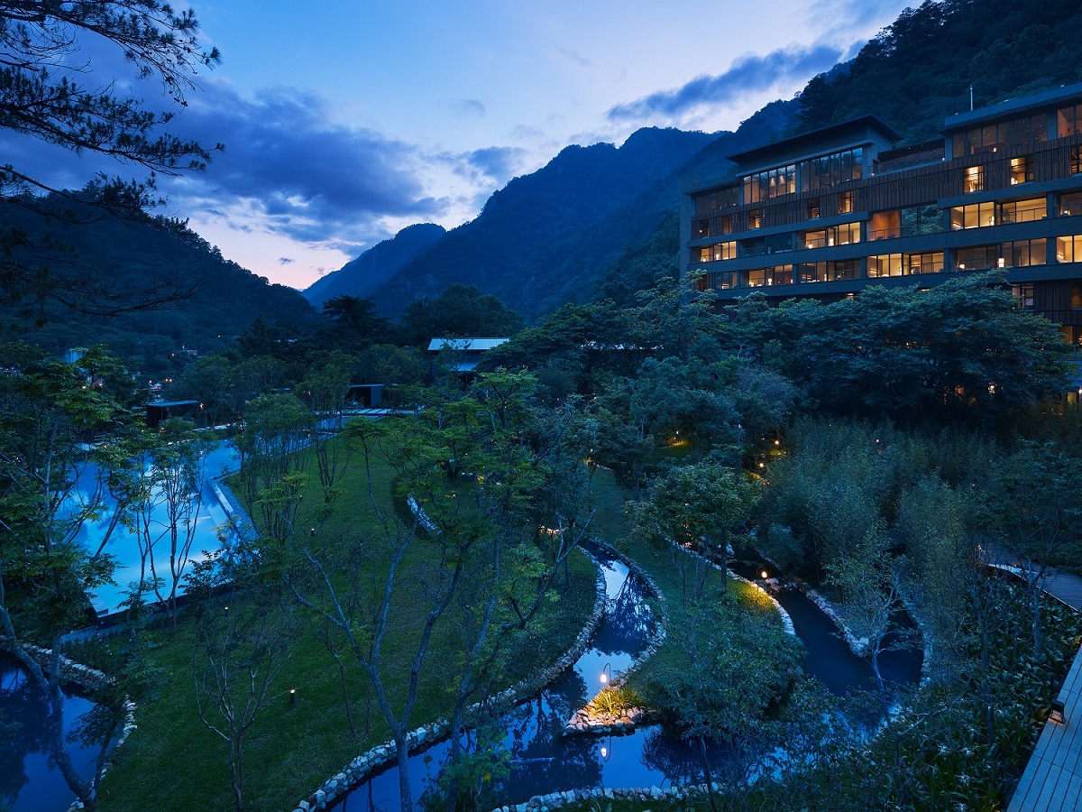 星のやグーグァン:台湾台中市和平区博愛里東關路一段温泉巷16号 / TEL 050-3134-8091 / 49室 / 21,000台湾ドル(税込、サービス料別)~ / アクセス:高鉄(新幹線)台北駅→高鉄約1時間→高鉄台中駅→送迎車(有料) 約1時間半