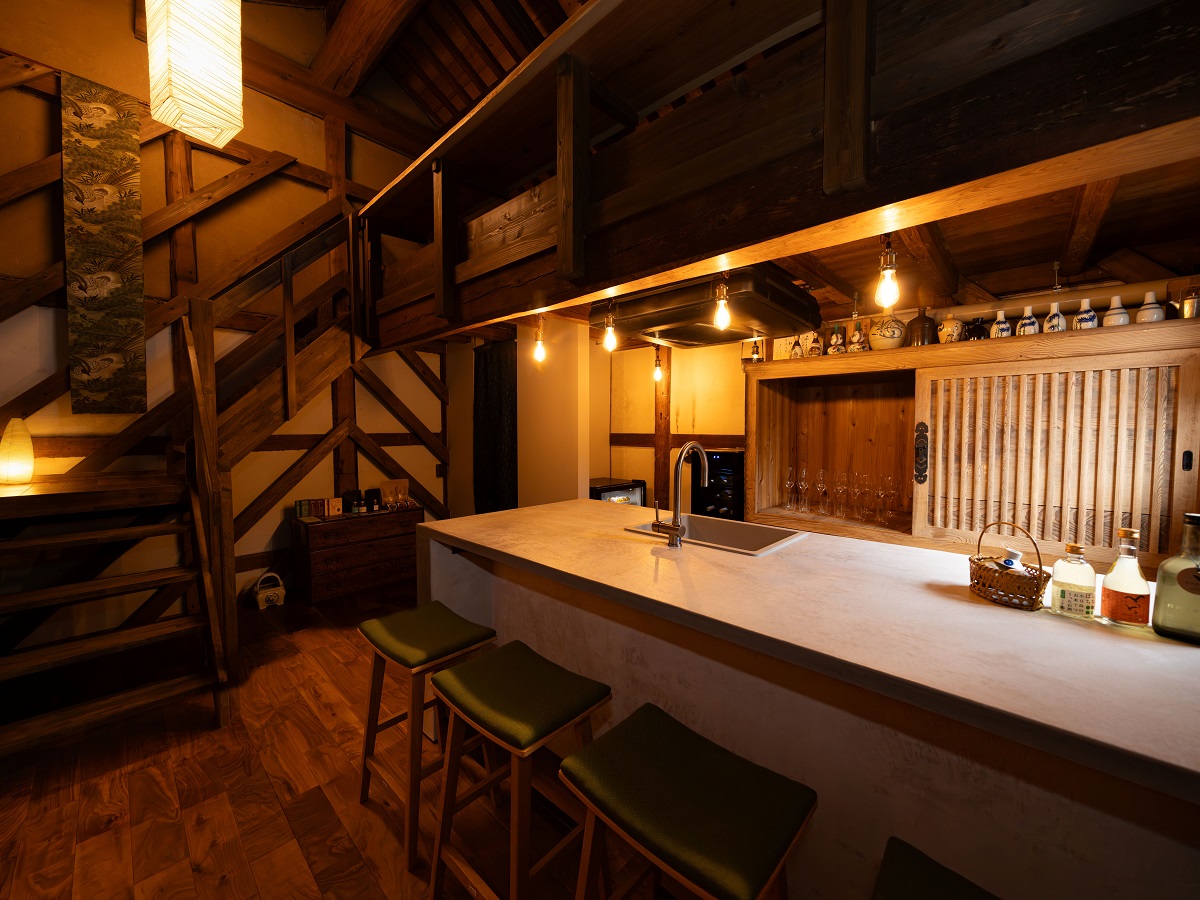 母屋は昭和6年築、蔵は明治元年築(推定)。塩や醤油で栄えた旧家の意匠と日本庭園を守りながら、現代的な快適性を織り込み、”住まいの温度”をそのまま体験へと変える宿。運営は島へ移住した家族が担い、空き家の保存活用と文化継承を軸に、地域とともに準備を進めてきた。施設は最大9名・寝室4室。一日一組にこだわり、静けさとプライバシーを確保している。キッチン、リビング、2つのトイレ、シャワーに加え、半露天風呂とサウナ、宿泊者専用の蔵BAR、月見台を備えている。約925坪の敷地に広がる日本庭園と蔵のたたずまいは、朝夕の光や風の移ろいを際立たせ、滞在に奥行きを与えている。