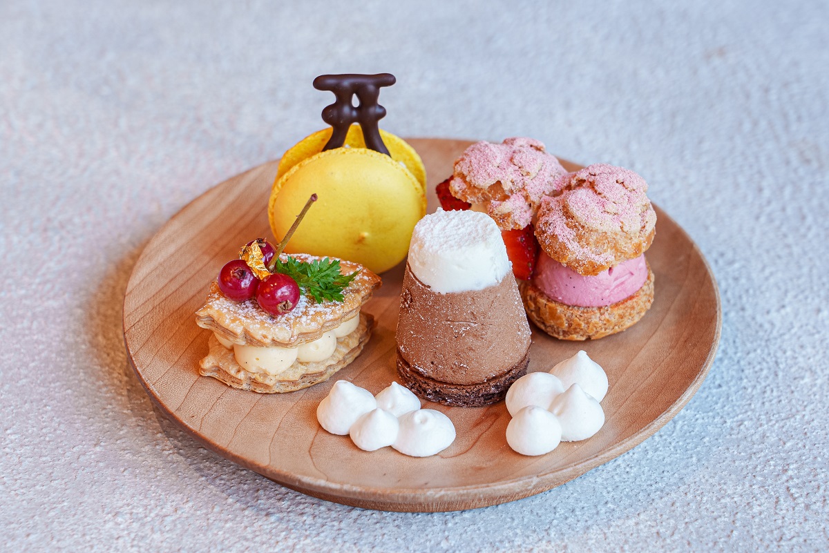 開運への願いが⾼まる年末から春節にかけてお届けする冬のアフタヌーンティーは、テーマを「開運来福」として、⾒て楽しい、⾷べてうれしいスイーツやセイボリーが用意されている。また、同時期に展開する「季節のスイーツ」には、チョコレートの豊潤な⾵味を存分に堪能できる「チョコレートムース」が登場。年末年始には開運を祈って多くの⼈が訪れるこの地で、幸せを呼び込む”冬のご褒美”として登場する今回の「開運来福アフタヌーンティー」。⽇本⼈にとって親しみのある紅⽩カラーのスイーツやパワースポットと⾔われる箱根の神社を彷彿とさせる⿃居デザインのマカロン、富⼠⼭を模したチョコレートムースなど、視覚から縁起の良さを感じられるスイーツが登場するとともに、⾷材が持つ開運パワーを存分に楽しめる充実の内容となっている。開運に関する「幸せな⾔い伝え」を⼤切にしながらひとつひとつ⾷材を選び、それぞれのスイーツやセイボリーを⼝にするごとに運気がアップすることを祈ってペストリーシェフ⾵⼾浩幸が丁寧に作り上げている。