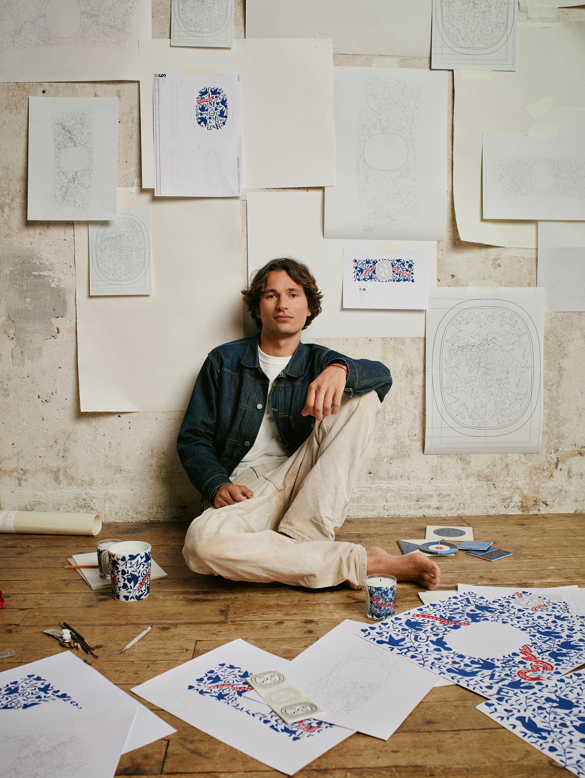 アーティストとのコラボレーションというメゾンの伝統に忠実に、Diptyqueは、若手イラストレーター兼陶芸家のConstantin Riant(コンスタンタン・リアン)を招き、3つの作品を通してブルーの化粧土を用いた技法で、モダンな世界を表現している。伝統的なポーセリンにインスピレーションを得て、彼はメゾンの代表的な製品を再解釈し、繊細なギフトとしてデザインしている。