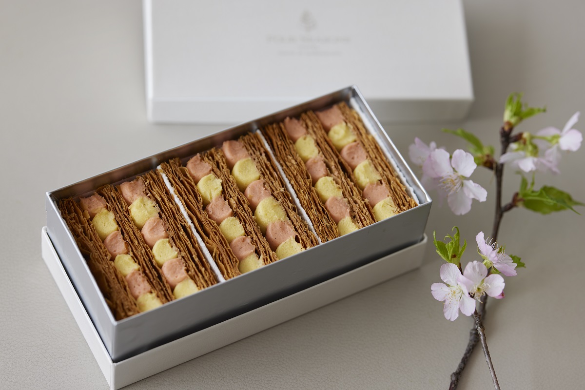 Sakura Mille-Feuille(桜 ミルフィーユ):3月1日(日)~4月14日(火) / イートイン 11:30〜23:00(L.O. 22:00) / イートイン ¥3,000 テイクアウェイ ¥7,000 / TEL 03-5222-5880、予約ページ ※引き取りの前日19:00までに予約ください。