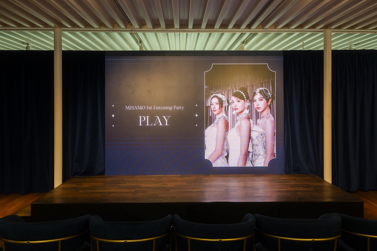 MISAMO JAPAN 1st ALBUM『PLAY』の世界観を体感できるリスニングパーティーを開催。『PLAY』の⾐装展⽰やフォトスポット、ミュージックビデオのセット展⽰、サイン⼊り台本、物販、そしてMISAMOへ⼿紙を届けることができるポストなどファンに嬉しいコンテンツがたくさん登場した。