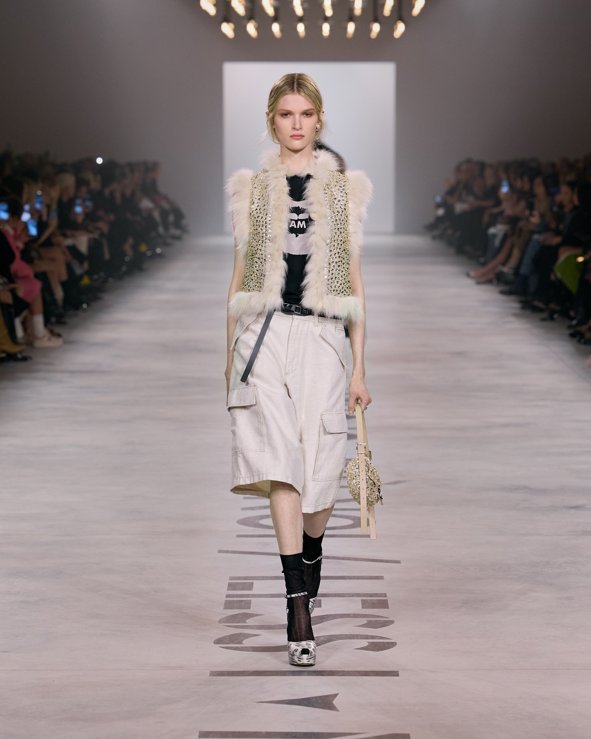 「Less I, more us」を重視すること。これは、ファッションシステムの複雑さを再認識するために、現代においてこれまで以上に求められる意思表明。そこには、共に働くことの価値、共通の目的と願望、そして他者や私たちを取り巻く世界を、深く理解し受け入れることの重要性が込められている。多様性は、個性を否定するものではなく、むしろビジョンを実現するための不可欠なプロセス。そして、もう一つ大切な要素が、欲望と身体への立ち返り。身体が本来持っている、根源的で現世的な衝動への関心が薄れている現代において、ワードローブは身体の欲望を支配するのではなく、それを受け入れ、寄り添い、そして触覚的なものとして可視化する役割を担う。このコレクションは、個人的な経験や思い出、感情が詰まった地図のようなもの。衣服が、人との出会い、特別な瞬間、興味、そして交流を象徴する。それらは、ファッションを通じて、そしてファッションの中で生きた人生、すなわちノマディズム(遊牧的な生き方)を物語る。このビジョンの具現化には、多岐に渡る才能が貢献している。異なる世代の対話として、ミレッラ・ベンティヴォーリオやサグ・ナポリといった女性アーティストたちの作品が取り入れられ、ワードローブ自体も、人間関係と文化的な蓄積の場として再考されている。