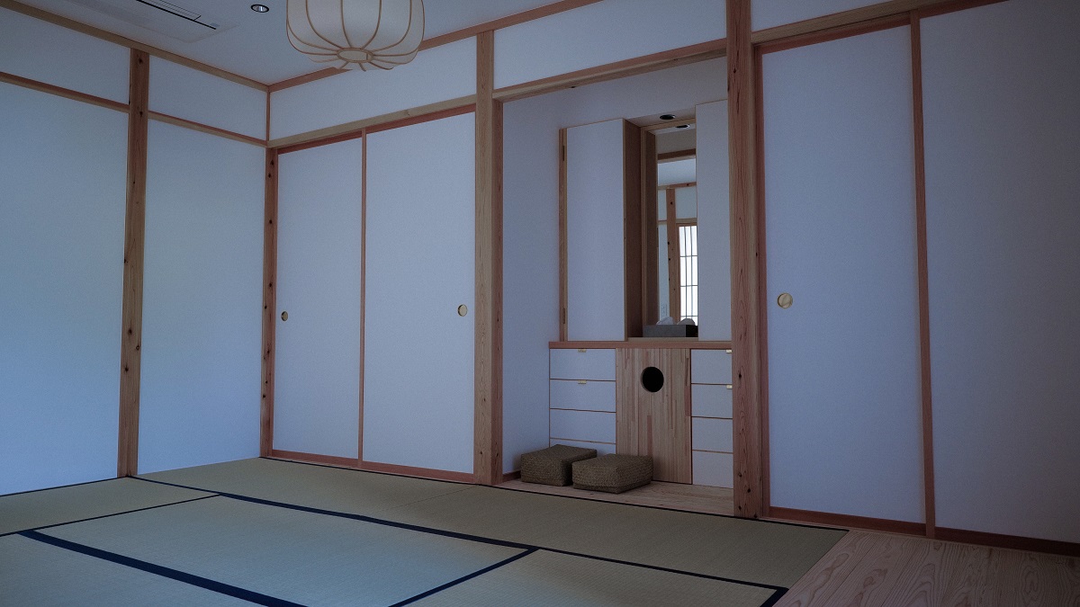 白樺荘の建物は、昭和38年に建てられた元・学習講堂。生徒たちが語り合い、学び、未来を描いてきたその空間を、安齋好太郎氏率いるADXが、土地の素材と職人の技で再生した。名称は、あえて「しらかば荘」を継承。新しい価値を上書きするのではなく、ここに積み重なってきた時間や営みを引き受けるという想いが背景にある。3つの客間は、視線が交わらないよう中心をずらして配置。椅子のように腰掛けられる縁側や、開閉によって空間を自在に繋ぐ障子など、滞在者の過ごし方に委ねる設計が施されている。畳・障子・襖は群馬県沼田市の職人による手仕事。違い棚は同市の指物師が手がけ、住まいが本来持っていた温もりと静けさを宿している。